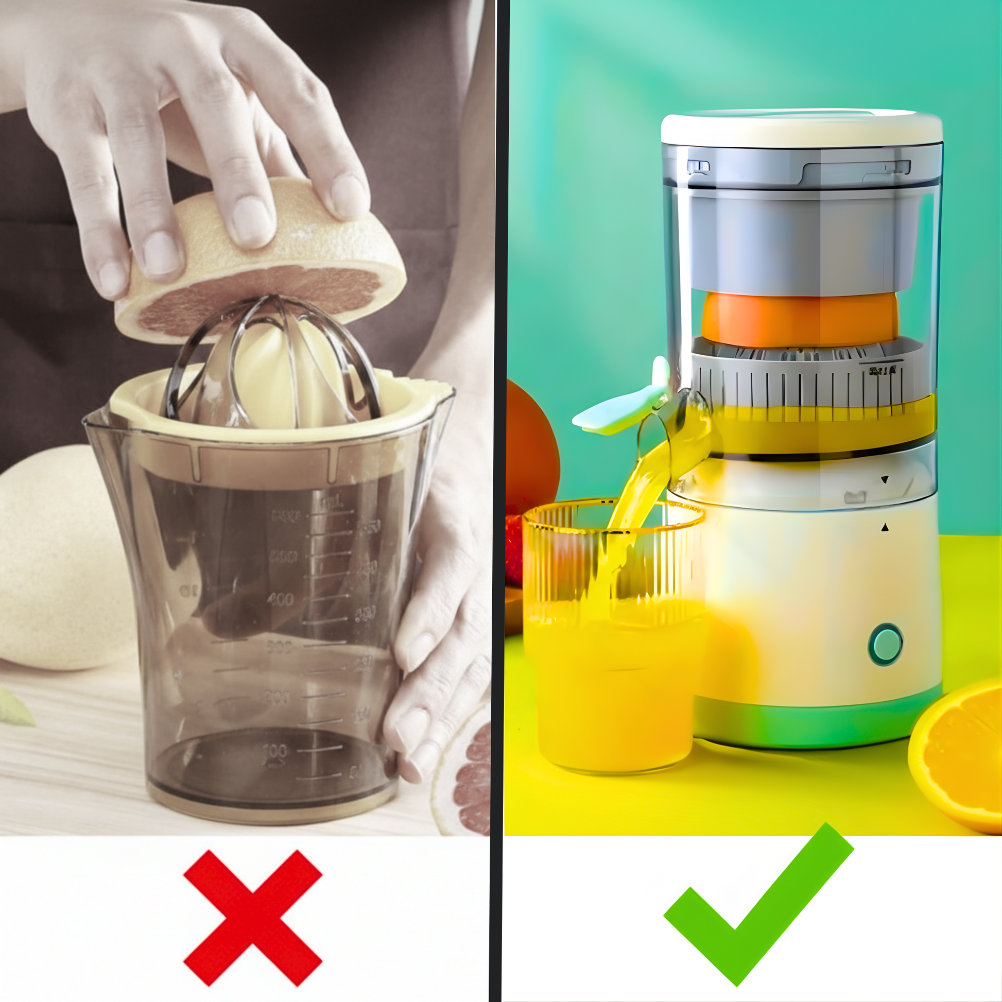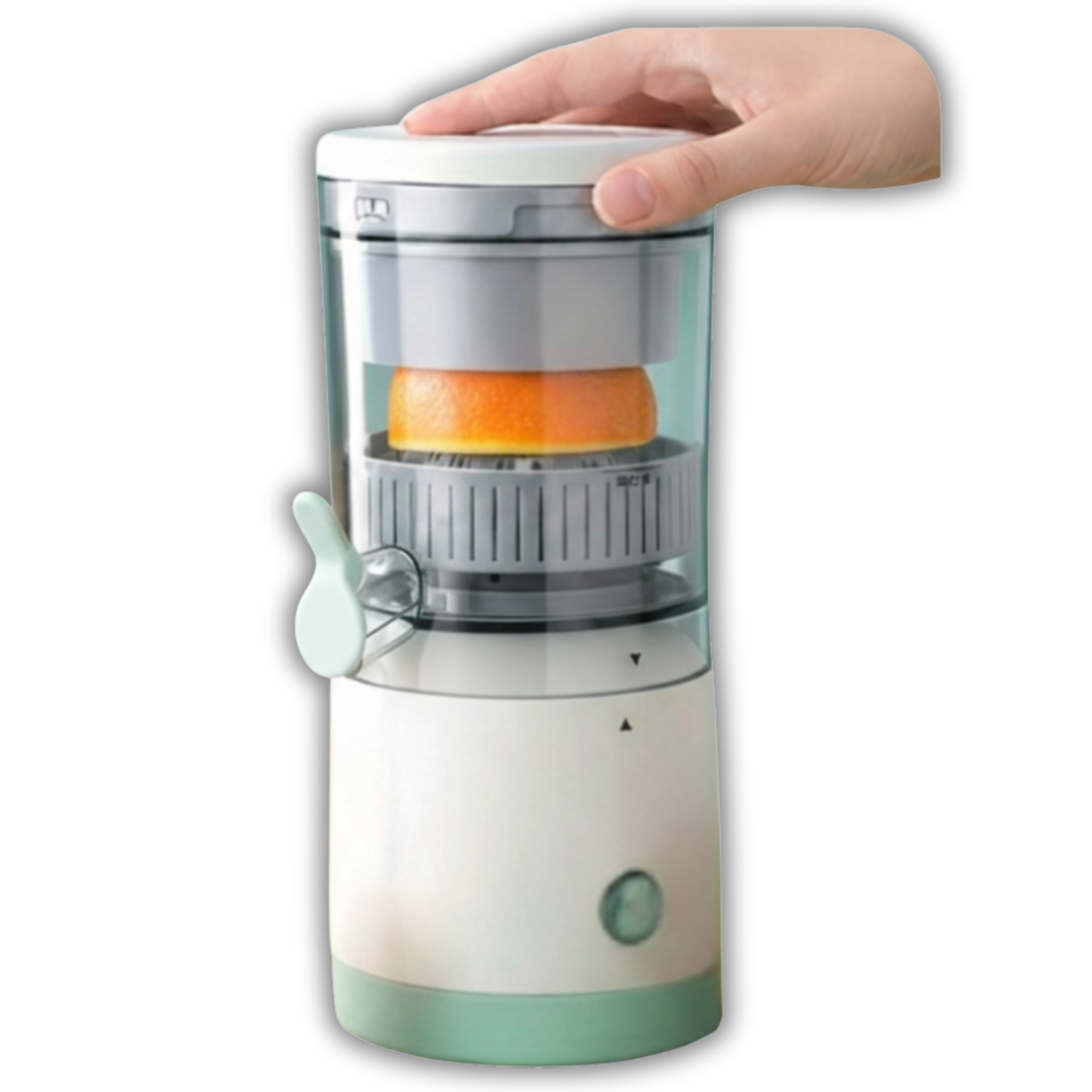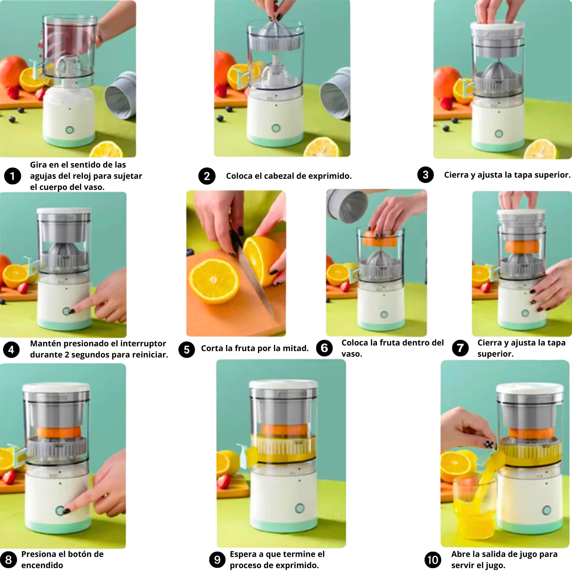 Exprimidor portátil eléctrico diseñado para obtener alto rendimiento de jugo de frutas como naranja, limón y otros cítricos.